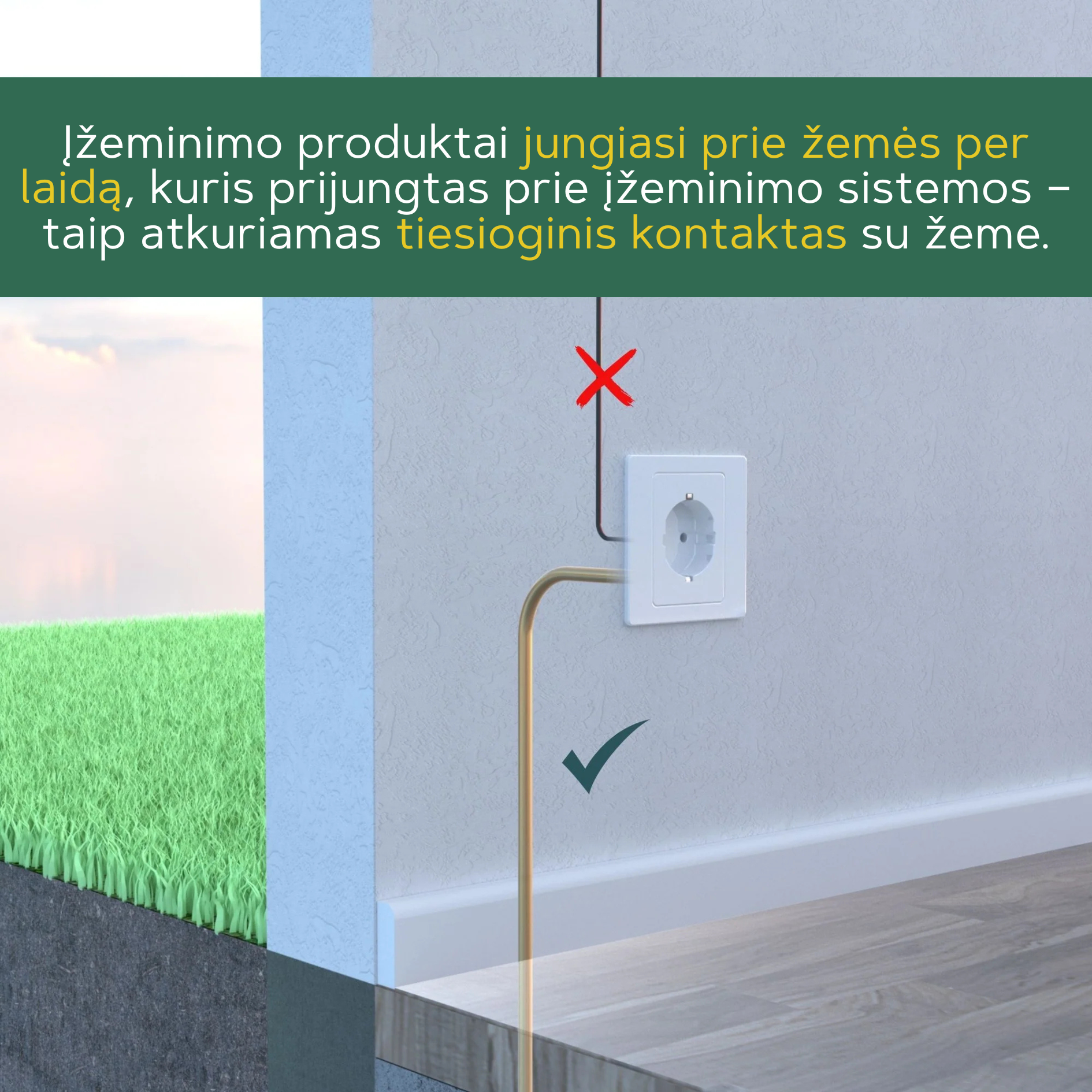 Įžeminimo užvalkalo prijungimas ir naudojimas